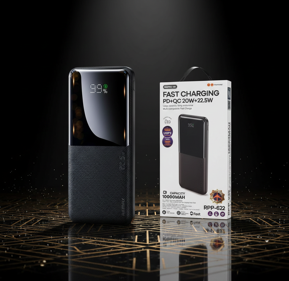 High-capacity 30000mAh power bank with 5 USB ports for charging multiple devices at the same time. Comes with built-in cable for easy use. Fast, safe, and perfect for travel, office, and daily use.